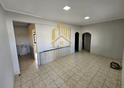 Sala e cozinha com acessos independentes, ambientes bem ventilados e iluminados.